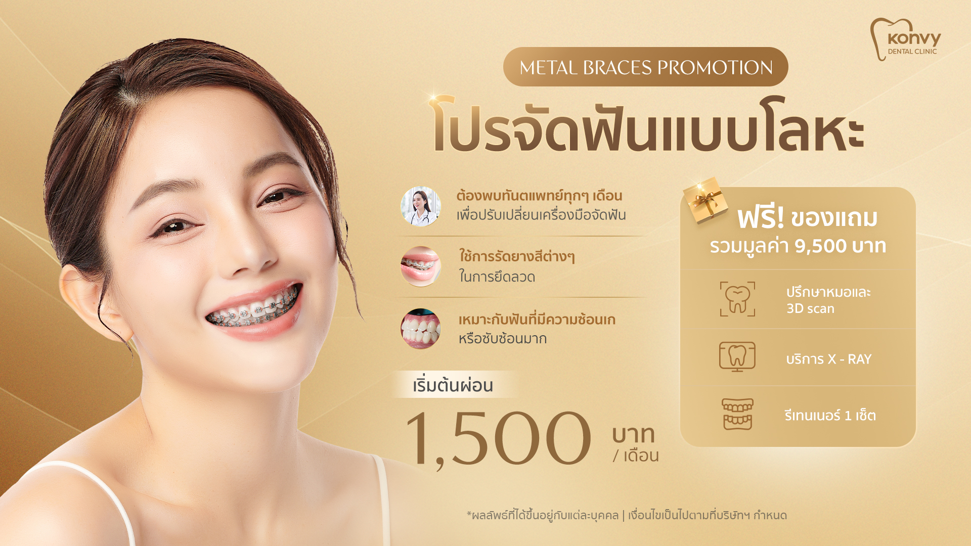 Achieving a beautiful smile is now more accessible than ever. If you’re looking for “clear aligners with monthly installments near me”, Konvy Dental Clinic offers flexible payment options via major credit cards. You can start paying from as little as 1,000 THB per month, with a 0% interest plan for 10 months, making it easier to budget without worrying about a large upfront payment.